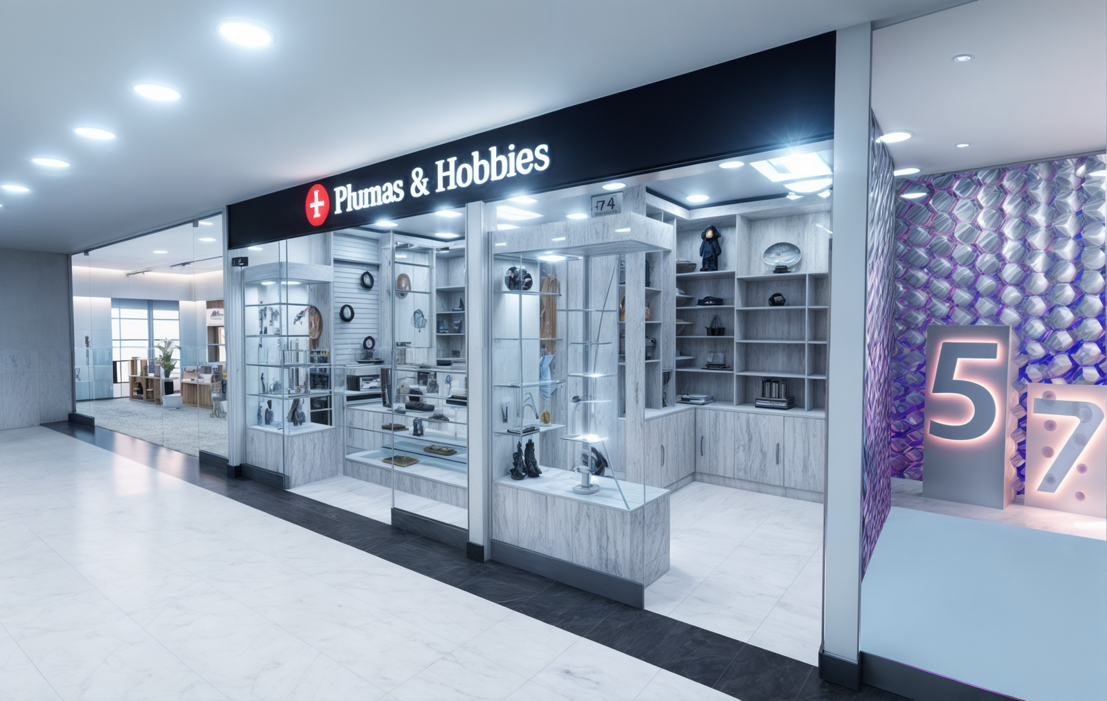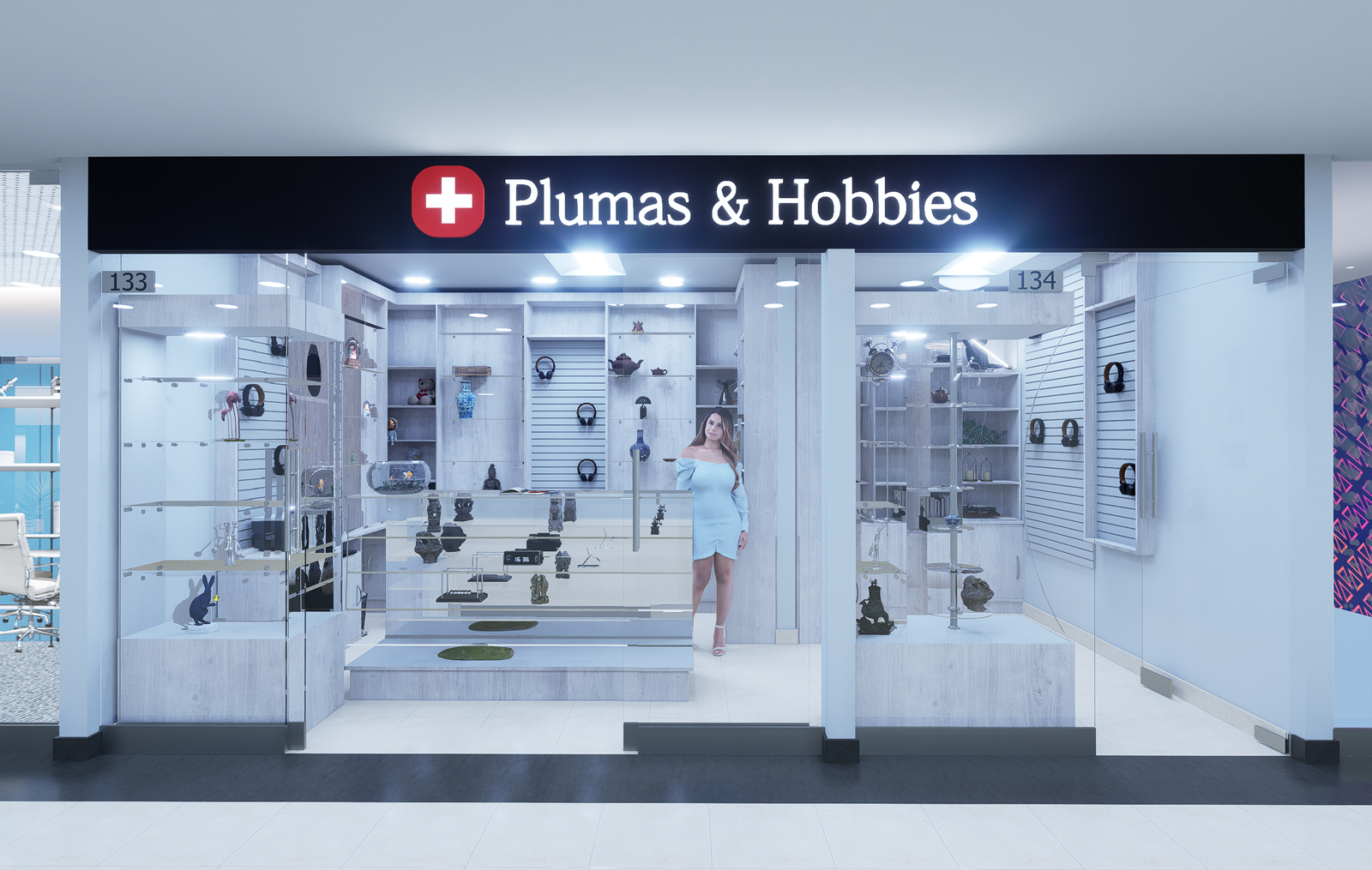 El proyecto consistió en la ampliación del local Plumas y Hobbies en la terminal del Aeropuerto El Dorado. Se amplió el área de venta y exhibición. La propuesta busca optimizar el recorrido del cliente, realzar la visibilidad de productos y reforzar la identidad lúdica de la marca.