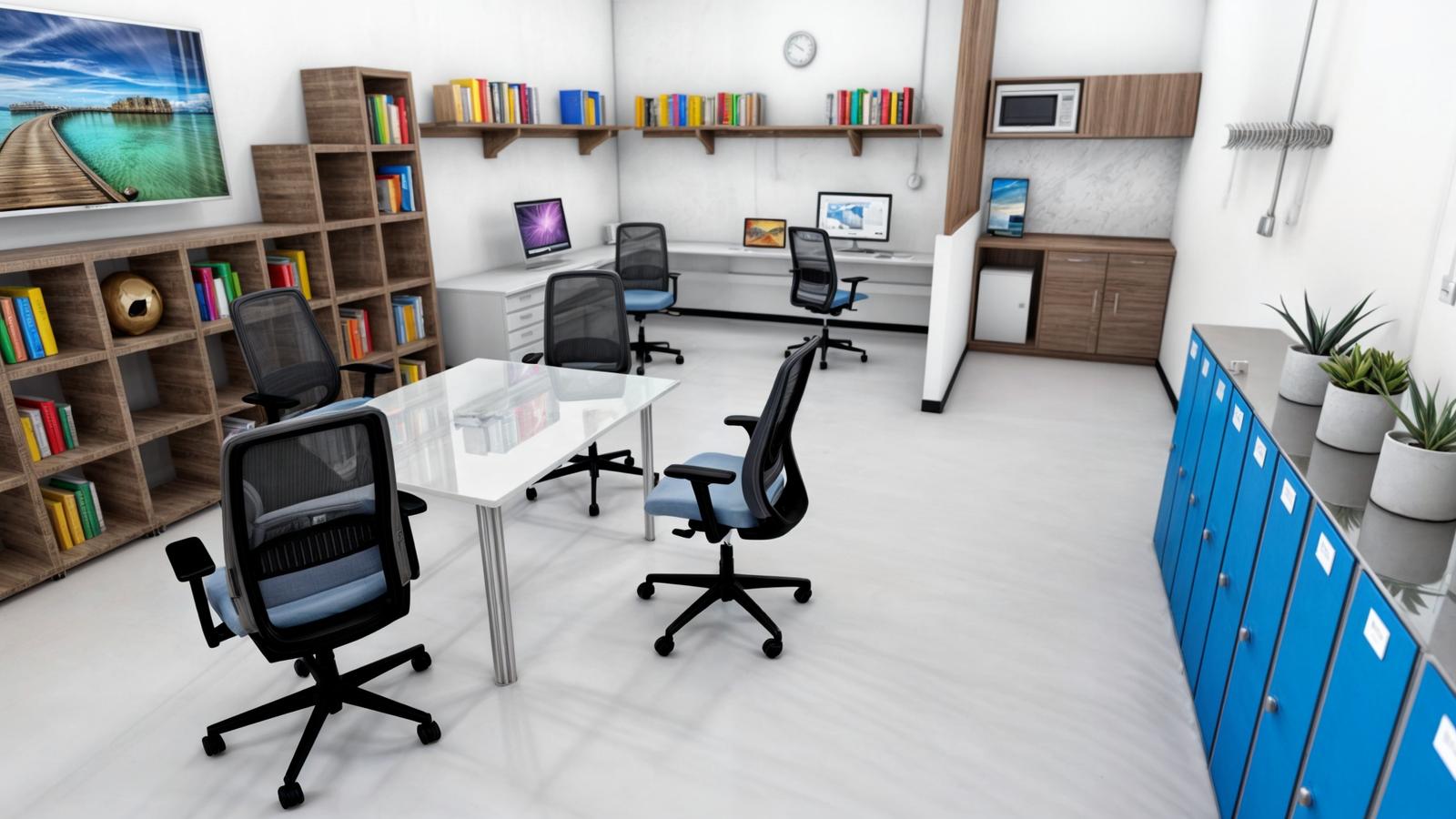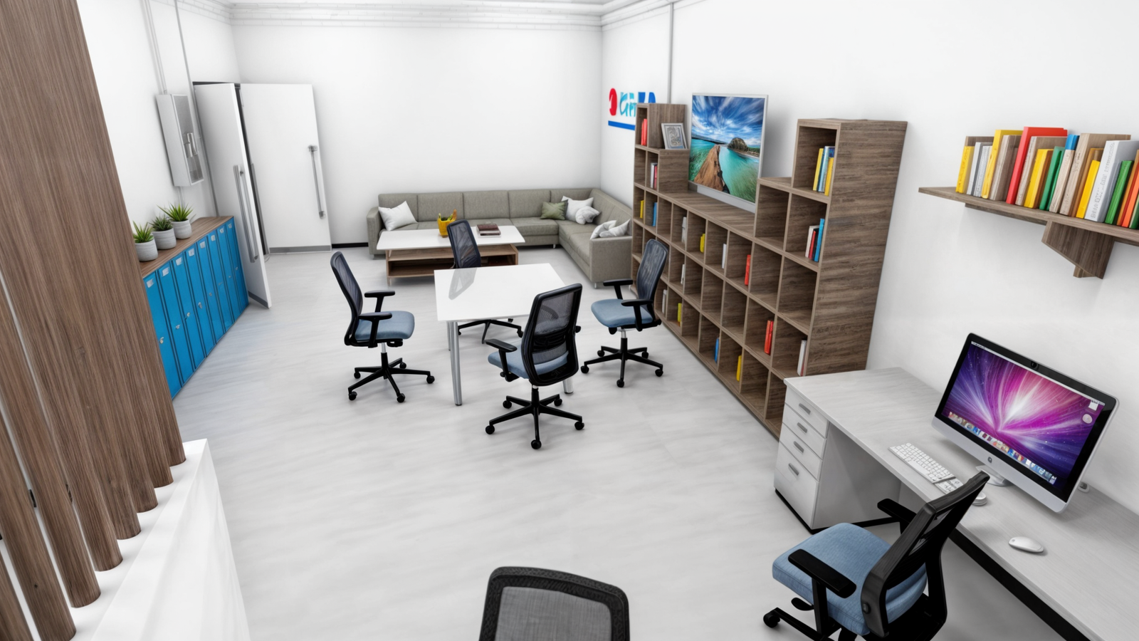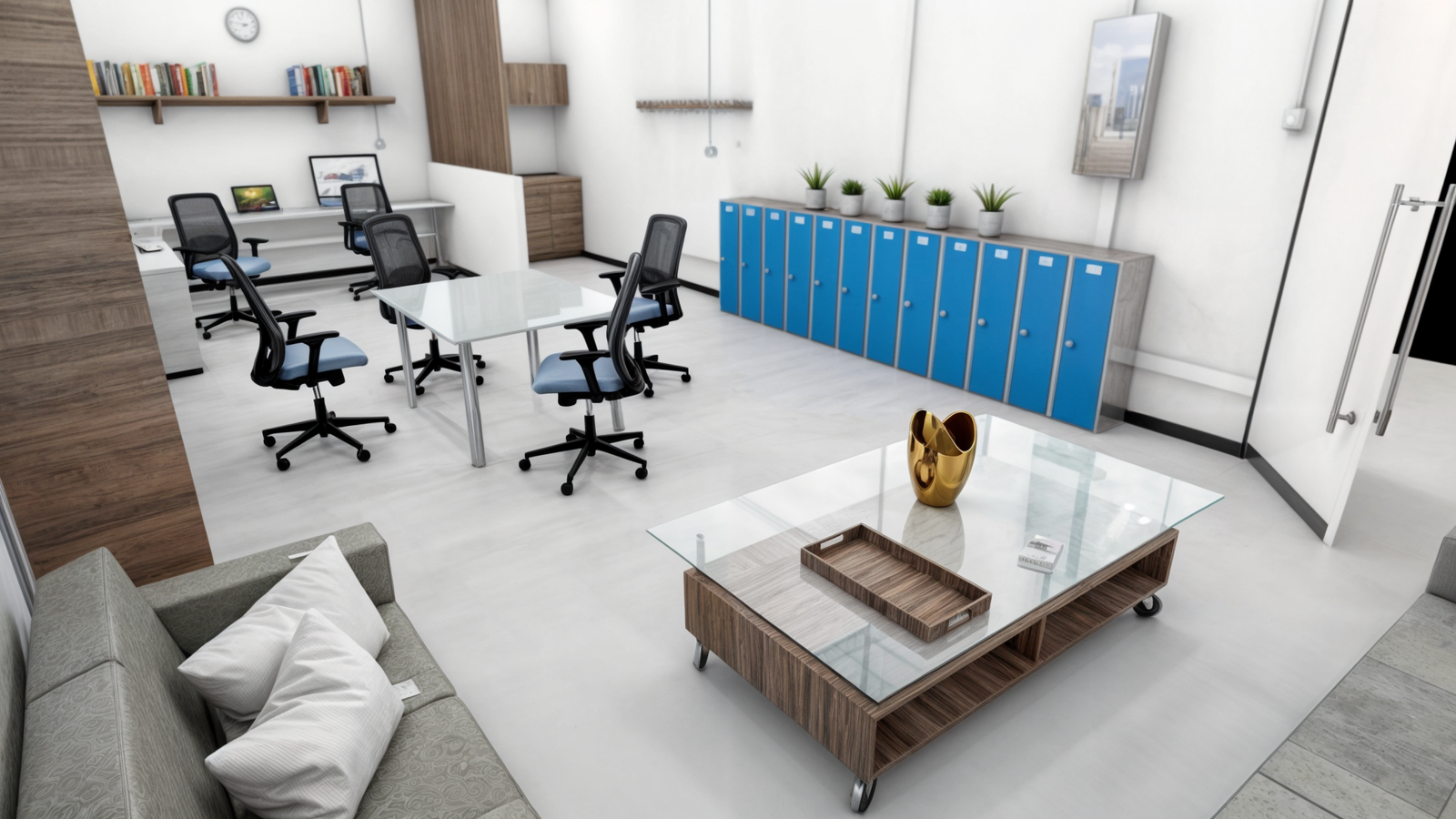Se desarrolló la propuesta inicial de distribución, definiendo zonas de trabajo y áreas de apoyo administrativo. A partir de este planteamiento, se generó el modelo 3D detallado del espacio y se produjeron renders fotorrealistas que ilustran la solución propuesta, permitiendo validar aspectos funcionales y estéticos ante el cliente y los operadores del aeropuerto.